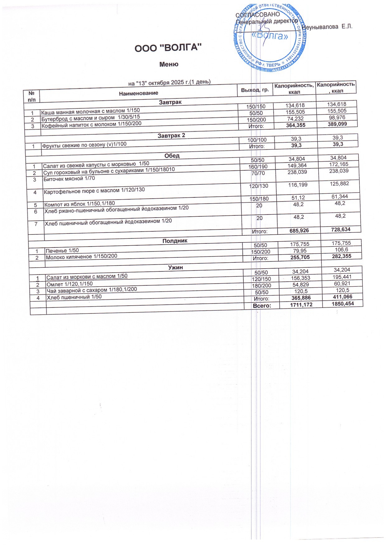 Меню ежедневного горячего питания